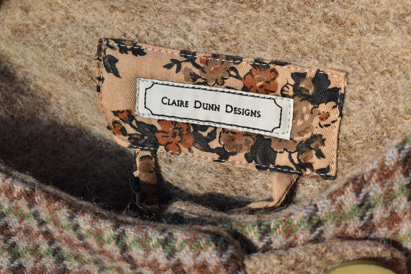 Lined with a vintage mid brown wool knit.